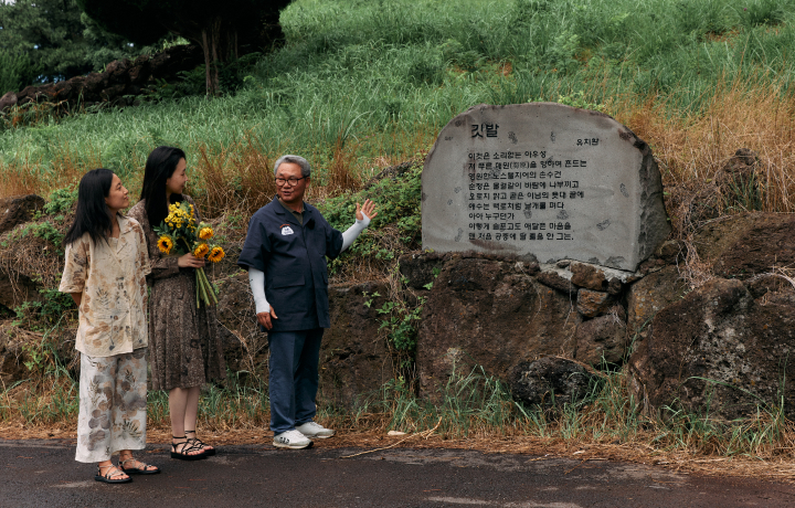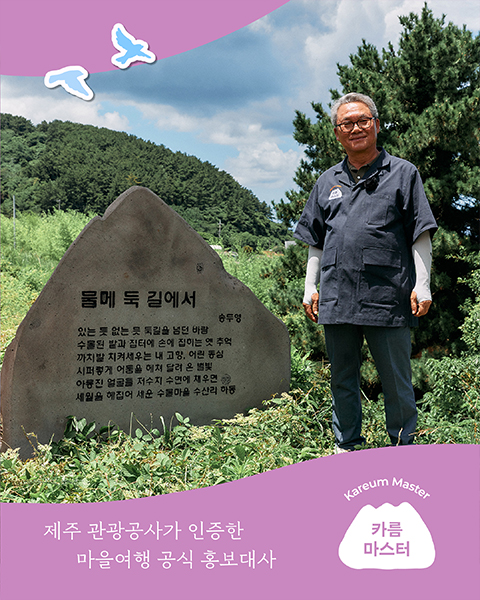 수산리 밭담길을 걷다 보면 모퉁이를 돌 때마다 돌에 새겨진 한국의 대표시인 100인의 시 100편을 만날 수 있습니다. 시가 흐르는 마을 수산리에서 발걸음마다 잠시 멈추어 나에게 울림을 주는 시도 낭송해보고 나만의 시도 써보세요.