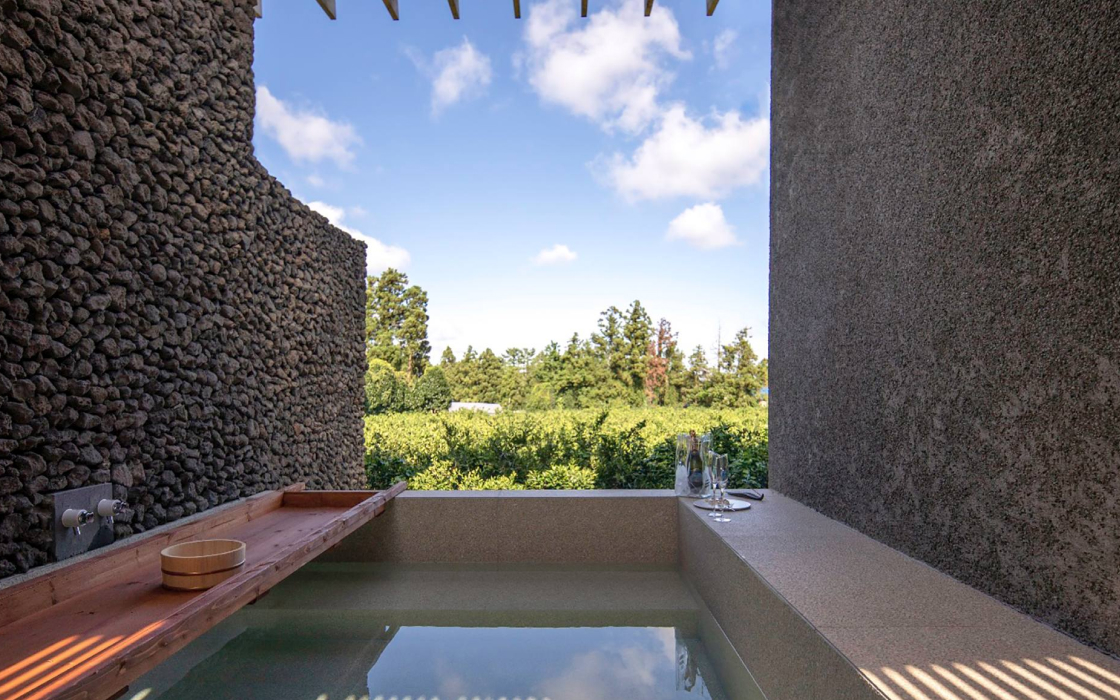 이곳의 하이라이트는 귤밭을 배경으로 한 노천탕입니다. 제주의 자연을 바라보며 친구들과 함께 휴식을 취하고, 해 질 녘에는 붉은빛, 때로는 보랏빛으로 물드는 하늘을 감상할 수 있어요. 이 아름다운 풍경을 배경으로 친구들과 함께 사진을 찍고, 예비 신부에게 편지를 쓰는 시간을 가져보는 건 어떨까요?