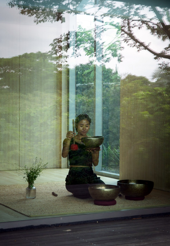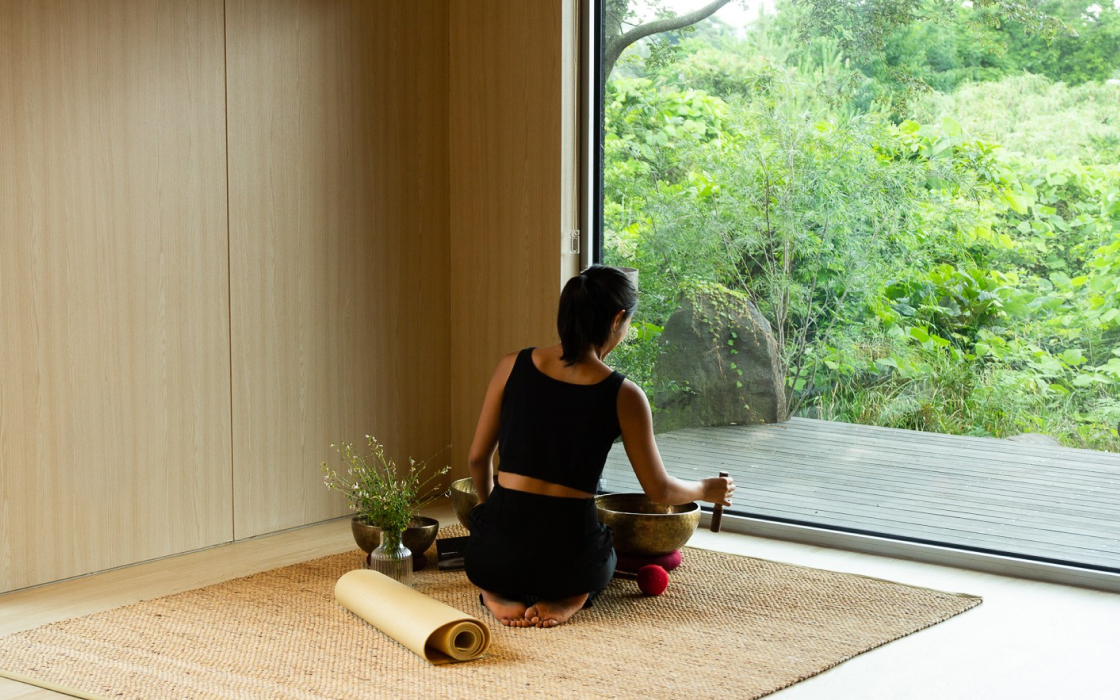 이곳의 특별함은 ‘공간’에서 시작됩니다. 자갈과 제주의 나무들, 푸르른 풀이 어우러진 여백의 정원이 있고, 통창과 나무로 이뤄진 높은 층고의 공간에서는 마음이 절로 트이는 듯한 경험을 할 수 있어요. 대형 싱잉볼의 깊은 울림은 이 경험을 더욱 특별하게 만들어줍니다.
