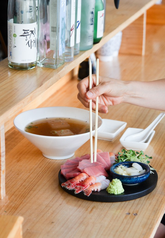 오픈형 주방과 마주하는 바 테이블에 앉아 사장님이 직접 숙성한 참치가 썰리는 모습을 보는 것만으로도 특별한 경험이 될 거예요. 영롱한 참치의 결을 감상하고 나면, 이제 입이 즐거워질 차례죠. 눈을 감고 음미해보세요. 몇 번 씹지 않아도 입에서 자꾸만 사라지는 부드러운 식감에 놀라실 거예요. 인손에서의 식사는 그야말로 오감을 만족시키는 경험이에요. 윤기가 흐르는 참치 한 입을 사르르 먹고, 시원한 술 한 잔을 호로록 마시고, 기본으로 제공되는 뭇국 한 입을 후루룩 하다 보면 어느새 시간 가는 줄 모르고 빠져들게 됩니다. 이것이 바로 수저를 놓을 수 없는 맛도리 삼각지대가 아닐까요? 혼자 온 여행객들에게 인손은 더욱 특별한 공간이 될 수 있어요. 강경원 대표의 말을 들어볼까요? “가끔 활발한 성격을 갖고 계시는 손님들이 혼술로 오셔서 다른 손님들과 한마음으로 다 같이 이야기를 나누며 즐거운 시간을 보내시는 때가 많아요. 그 순간이 제일 아름다운 여행의 즐거움과 추억, 공간에 대한 기억이 남지 않을까 합니다.”