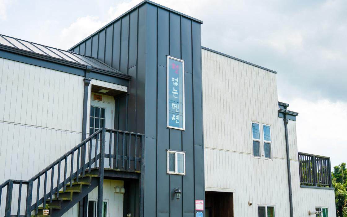 비자림을 지나 조용한 마을길을 따라가다 보면, 소박하지만 따뜻한 분위기의 ‘철없는 펜션’을 만날 수 있어요.