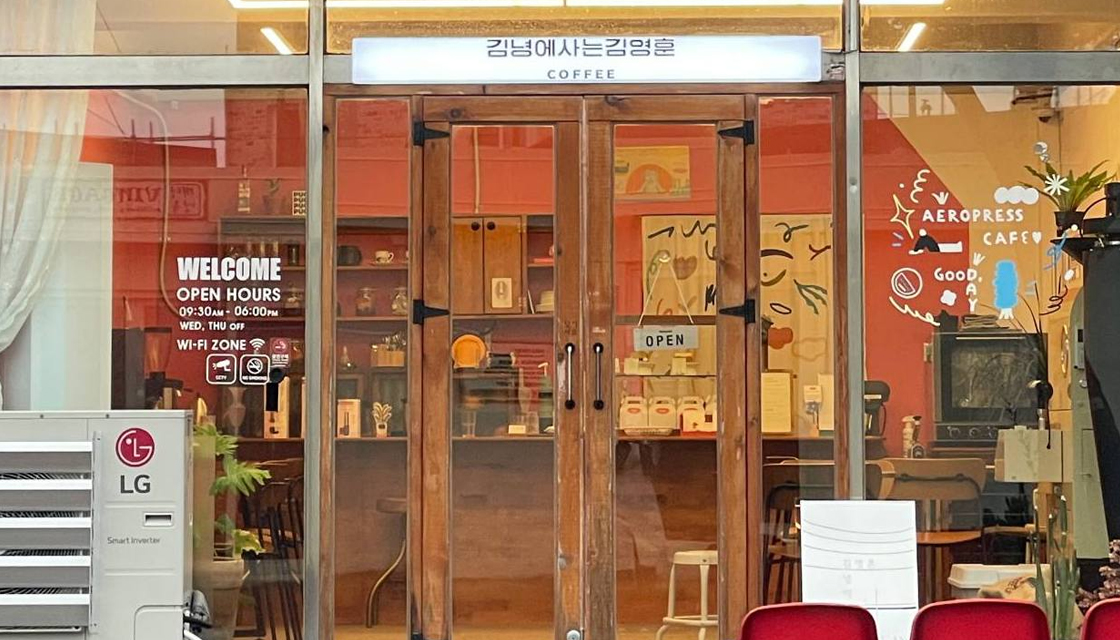 - 안녕하세요! 김녕마을 초입에 위치한 작은 로스터리카페 김녕에사는김영훈입니다. 저희는 2019년 6월 오픈이래로 에스프레소 머신이 아닌 오직 ‘에어로프레스’라는 추출도구만 사용하여 커피를 내어드리고 있습니다.