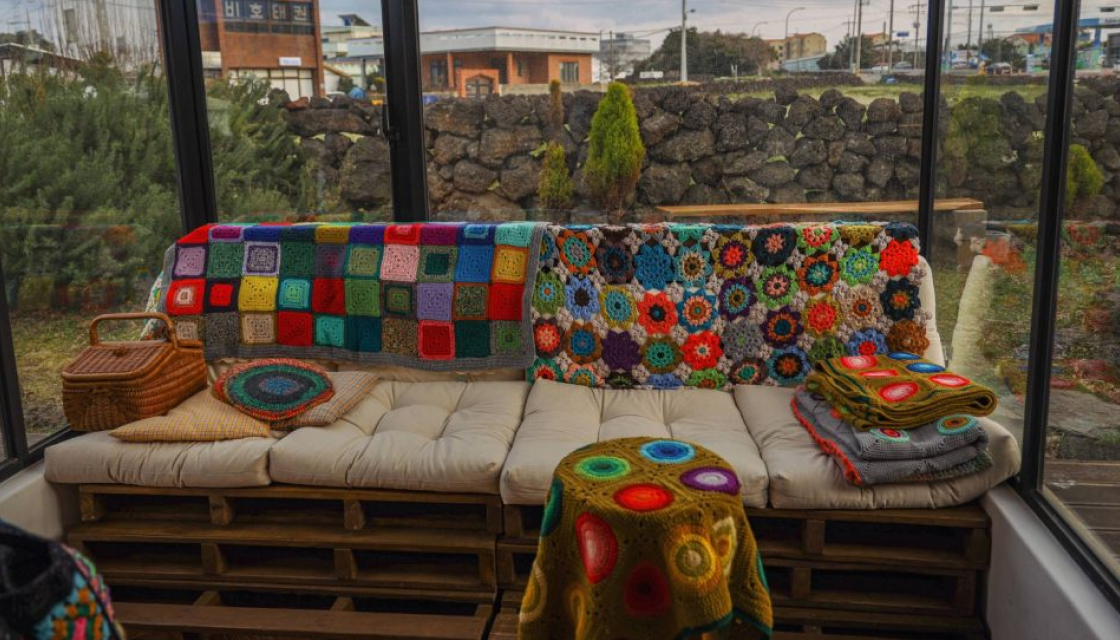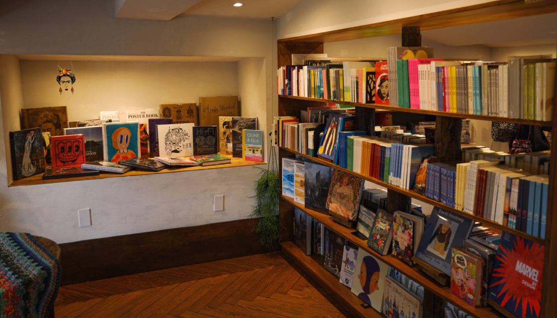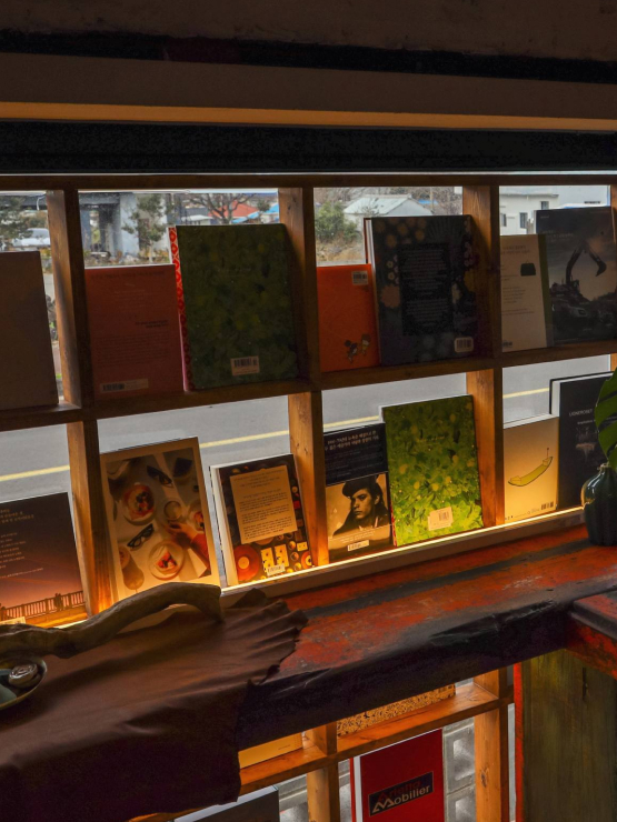 - 제주의 옛집을 그대로 사용하여 낮은 지붕과 어우러진 오래된 폭낭을 돌아 들어와야 하는 입구를 지나면 책들의 경계에 들어섬을 느낄 수 있는 공간, 동네 책방 마고입니다.