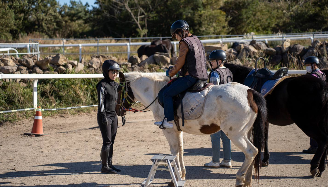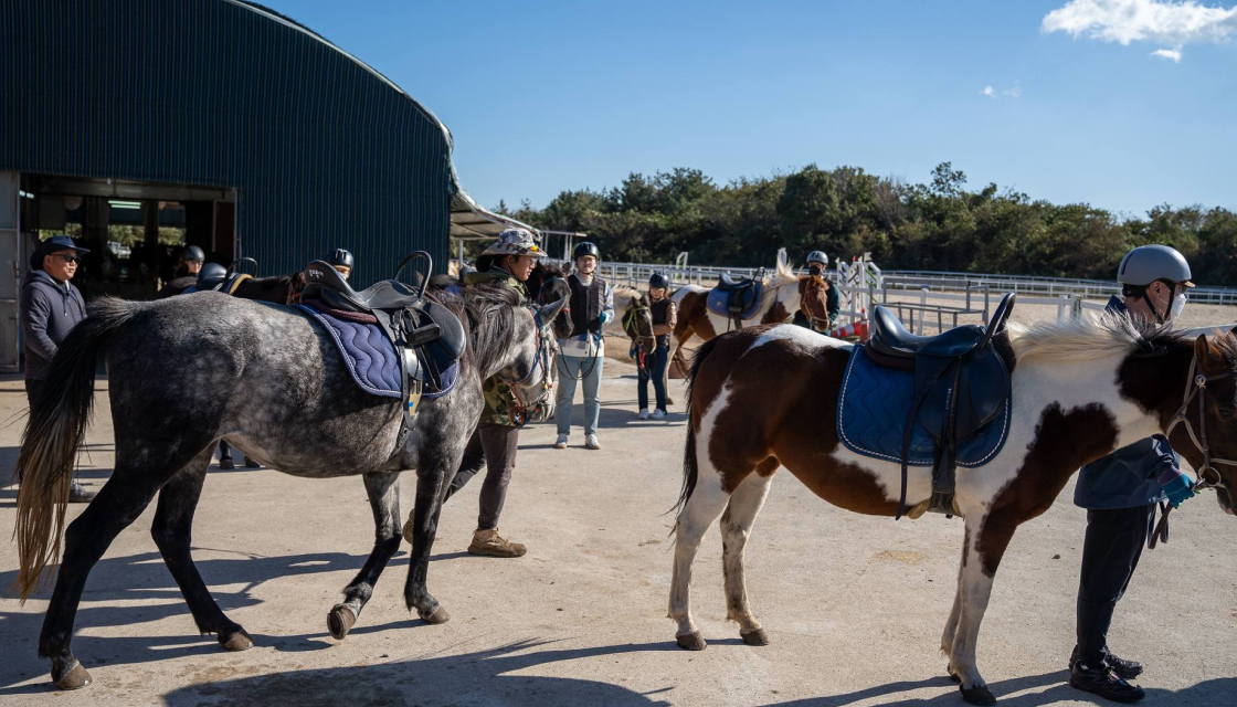 - 말을 그냥 단순히 체험하고 가시는 게 아니라, 실제로 승마 교육도 배우시고요. 또 코치하고 함께 마로길 체험하셔서 정말 승마가 어떤 것인지 꼭 옷귀마테마타운에 오셔서 승마 체험 한번 해보시길 바랍니다.