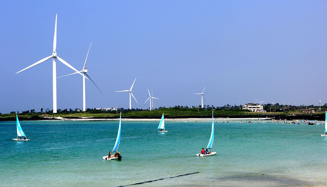 하얀 모래에 부서지는 파도들이 시원한 소리를 내고, 코발트빛 바다 풍경에 빠져보세요. 갓돔과 노래미 돔이 잘 잡히는 갯바위 낚시터가 낚시꾼들에게 인기 있는 명소입니다. 제주의 자연을 그대로 느낄 수 있는 지질 트레일이 있어 쉬엄쉬엄 걸어볼 수 있어요. 해변 산책을 하며 시원한 바다에 풍덩 빠져보는 즐거움도 누릴 수 있답니다. 푸르른 바다와 대비되는 흰 풍력발전소가 마치 해외에 온 듯한 느낌을 주는 곳. 김녕 해수욕장. 근처에는 용천동굴, 당처물 동굴, 만장굴 등 시원하고 신기한 제주의 동굴이 있어요.