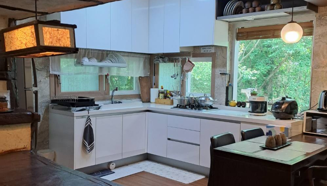 - 양념, 종이컵, 장갑, 비닐, 수세미 등 꼼꼼히 구비된 주방용품