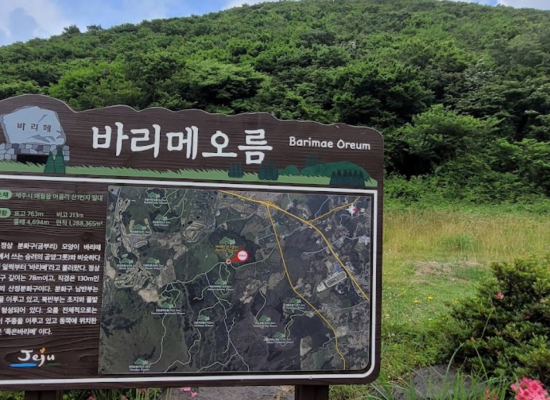 바리메오름은 해발 763m이며 오름의 형상은 원형입니다. 정상부의 분화구(굼부리)는 둘레가 130m이고 깊이는 78m이며 전형적인 분화구의 모습을 잘 간직하고 있는 곳이지요. 오름의 모양이 바리를 닮았다고 하여 지어진 이름입니다. 바리는 제주도에서 여성들의 밥그릇으로 사용된 그릇입니다. 오름의 서쪽으로는 완만한 경사지로 목장이 들어서 있고 나머지 경사면에는 나무들이 무성하게 자라나고 있습니다. 오름은 주소가 산지로 되어있어, 내비게이션 검색 시 정확한 위치를 알 수 없거나, 주차장이 따로 없는 곳이 많습니다. 또한 일부 오름은 사유지로, 출입이 제한되거나 통제되어있는 곳도 있습니다. 이에, 오름 방문 시에는 사전에 제주관광정보센터(064-740-6000) 등을 통해 정확한 정보를 확인하시고 방문하시기 바랍니다.