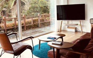 정원집은 서귀포 남원의 동백마을에 자리잡고 있어요. 500여평의 넓은 정원이 있는 아름다운 숙소입니다. 거실에서 바라보는 정원과 그 뒤로 펼쳐진 동백군락지는 지친 몸과 마음에 멈추고 머무는 결심이 주는 여유를 안겨줄 것입니다. 옷장 속에 깜짝 선물 처럼 숨어있는 책장이, 그 책장에서 여러분을 기다리고 있는 제주의 책들이, 넓은 유리창이 여러분에게 잊을 수 없는 기억 한조각을 만들 수 있기를 기대합니다.