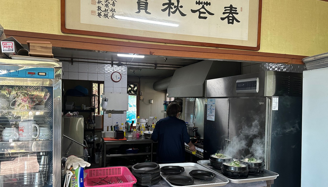 잘못 들은 걸까? ’의귀에서 가장 맛없는 집’이라고 자부(?) 하시는 사장님 너스레가 조금 의아하긴 했지만 이내 테이블을 가득 채우는 인파를 보고 직감할 수 있었어요. 이곳, 진정 도민 맛집이겠구나. 밑반찬이 깔리고 본 메뉴가 등장하는 순간 의심은 없던 것 처럼 사라져요. 설설 끓는 뽀얀 국물부터 마음이 설레요. 여기는 삼복더위건 비가 오건 눈이 오건 그냥 지나칠 수 없는 맛집이예요.
