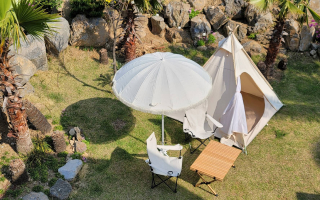 [제주, 그리고]는 서귀포시의 구시가지와 신시가지 사이 언덕에 있어요. 빨간 벽돌로 지어진 2층 집과 넓은 정원이 로맨틱하게 펼쳐져 있어요. 정원이 넓어 아이들이 뛰어놀기도 좋아요. 캠핑 감성을 살릴 수 있도록 텐트와 테이블, 의자도 놓여있고요. 밤에는 정원의 조명이 정말 아름다워요. 석부작 박물관의 숨도 카페 바로 옆집이에요. 2022년 여름에 오픈했고, 건물을 모두 친환경 소재로 만들었어요. 바다도 보이고 한라산도 보이는 뷰 맛집입니다.