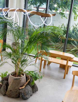 - 곶자왈 정원과 4계절내내 노란 하귤을 주렁주렁 달고 있는 메인정원의 하귤낭은 제주 감성을 담은 인테리어 포인트