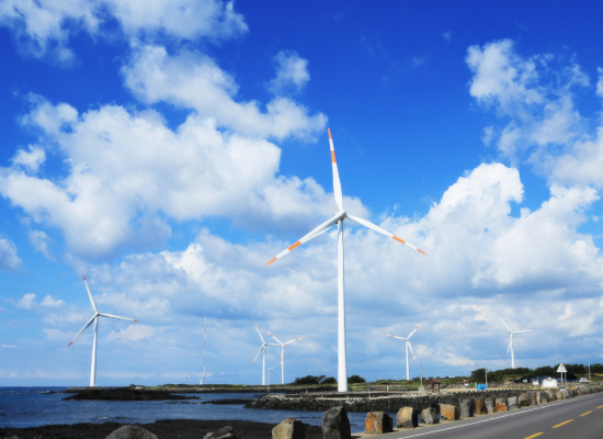 - 한줄로 늘어선 풍차+바다가 만든 풍경