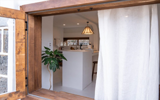 - 통창으로 들어오는 시원한 바람과 흩날리는 흰 커튼