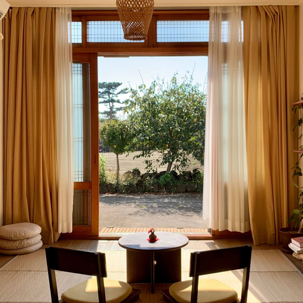 신창리 조용한 마을에 위치한 독채 숙소예요. 숙소 전면에는 밭이 넓게 펼쳐져 밭의 농작물에 따라 거실에서 보이는 풍경이 달라집니다. 오운스테이를 준비하며 내내 저희 부부가 여행할 때를 돌이켜 보았어요. 여행을 할 때 저희가 무엇을 선호하는지, 어떤 부분이 좋고 어떤 부분이 불편했는지를 떠올리며 가구를 배치하고 인테리어를 진행했습니다. 그러다 보니 공간 곳곳 저희 부부의 여행 취향이 담겨 있어요.