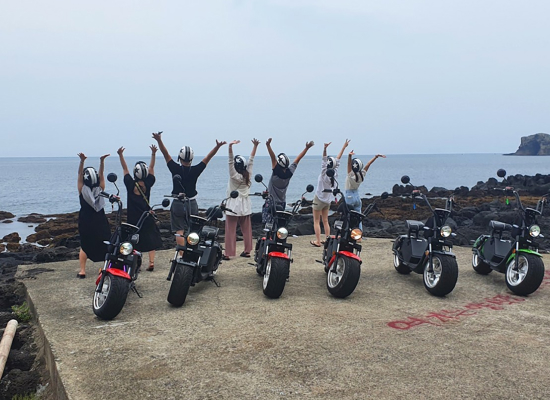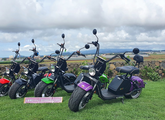 에메랄드빛 바다와 맞닿은 파란 하늘을 곁에 두고 달리는 해안도로 드라이브는 언제나 옳지요. 가슴 뻥 뚫리는 드라이브를 전기바이크로 달려보는건 어떨까요? 수월봉입구 ‘노을해안1014’는 카페와 전기바이크 임대를 함께 하는 이색 체험 카페로 다양한 칼라의 전기바이크가 1인용과 2인용으로 나누어 구비되어 있습니다. 이륜차는 사륜차와는 또 다른 경험을 선사합니다. 원하는 지점에서 주차 걱정 없이 세울 수 있고, 천천히 그리고 더 깊게 여행을 음미할 수 있기 때문이죠. 바람을 직접 느낄 수 있는 상쾌함은 덤으로 받는 선물이고요. 전기로 굴러가니 페달을 밟을 필요 없이 발판에 발을 얌전히 올려놓고 균형감각과 브레이크만 잘 잡으면 됩니다. 최고 속도는 30km로 자전거나 킥보드를 탈수 있고 자동차 면허증을 소유하고 있다면 누구나 이용이 가능하며 특히, 노을해안1014의 전기바이크는 한국 국가 인증 제품으로 번호판등록 및 책임 보험이 가입되어 있답니다.