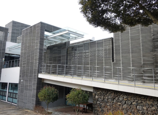 저지문화예술인 마을 안에 자리한 제주현대미술관은 지하 1층, 지상 2층 규모로, 제주 자연친화성을 우선으로 한 공모전의 최우수작품을 실시 설계한 건물입니다. 국제 조각 심포지엄 야외공원과 함께 1천여 명이 동시 관람 가능한 야외공연장, 특별전시실, 상설전시실, 기획전시실, 아트숍, 세미나실 등의 문화 예술 복합 기능을 갖춘 공간입니다.