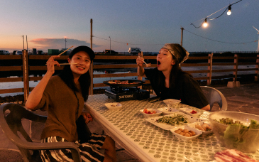 동쪽 바다에 노을이 스며드는 김녕리 해안에서 갓 잡은 싱싱한 해산물과 함께 바비큐를 즐기고, 마을 삼춘들과 둘러앉아 나누는 정겨운 이야기 속에서 특별한 맛과 정이 쌓여갑니다.