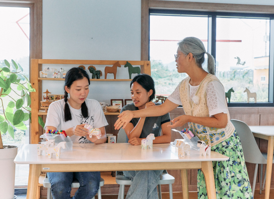 승마 체험 후에는 말도자기 만들기 시간을 가져 제주 조랑말의 특징을 살린 나만의 도자기 작품을 직접 그려봅니다. 체험 과정에서 제주 조랑말의 역사와 특징, 가시리 지역의 목축 문화에 대한 이야기도 들을 수 있으며, 완성된 말도자기는 당일 가져갈 수 있어 가시리 여행의 소중한 기념품이 됩니다. 온 가족이 함께 안전하게 즐길 수 있는 체험입니다.