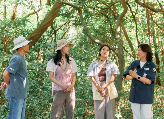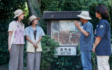 동백나무들 사이로 난 오솔길을 걸으며 동백의 생태와 역사, 그리고 이 숲이 마을 사람들에게 어떤 의미인지 들어봅니다.