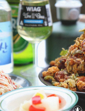 24시간 야채 숙성 후 바삭한 튀김옷에 쫄깃한 오징어와 향긋한 깻잎이 더해진 풍미 넘치는 해물야채통닭