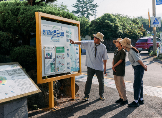 2021년부터 세 번의 도전 끝에 마침내 환경부 생태관광지역으로 인정받은 특별한 마을의 이야기를 토박이 도슨트와 함께 들어보세요. 마을 곳곳에 남아있는 옛 흔적들과 함께 마을 삼춘들의 따뜻한 인사를 받으며 걷다 보면 어느새 제주 마을 공동체의 정을 느낄 수 있습니다. 제주 식재료로 만든 '차롱치유밥상' 등 지역주민 연계 산림치유 프로그램이 운영되는 마을의 특별함을 만나고, 특히 현지인들만 아는 속골천에서는 맑고 시원한 물에 발을 담그며 제주 자연이 주는 청량함을 온몸으로체험할 수 있습니다.