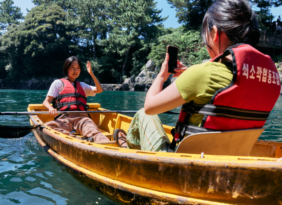 유네스코 생물권 보존지역으로 지정된 쇠소깍에서 전통 테우와 현대적인 카약을 모두 체험할 수 있는 특별한 프로그램입니다.