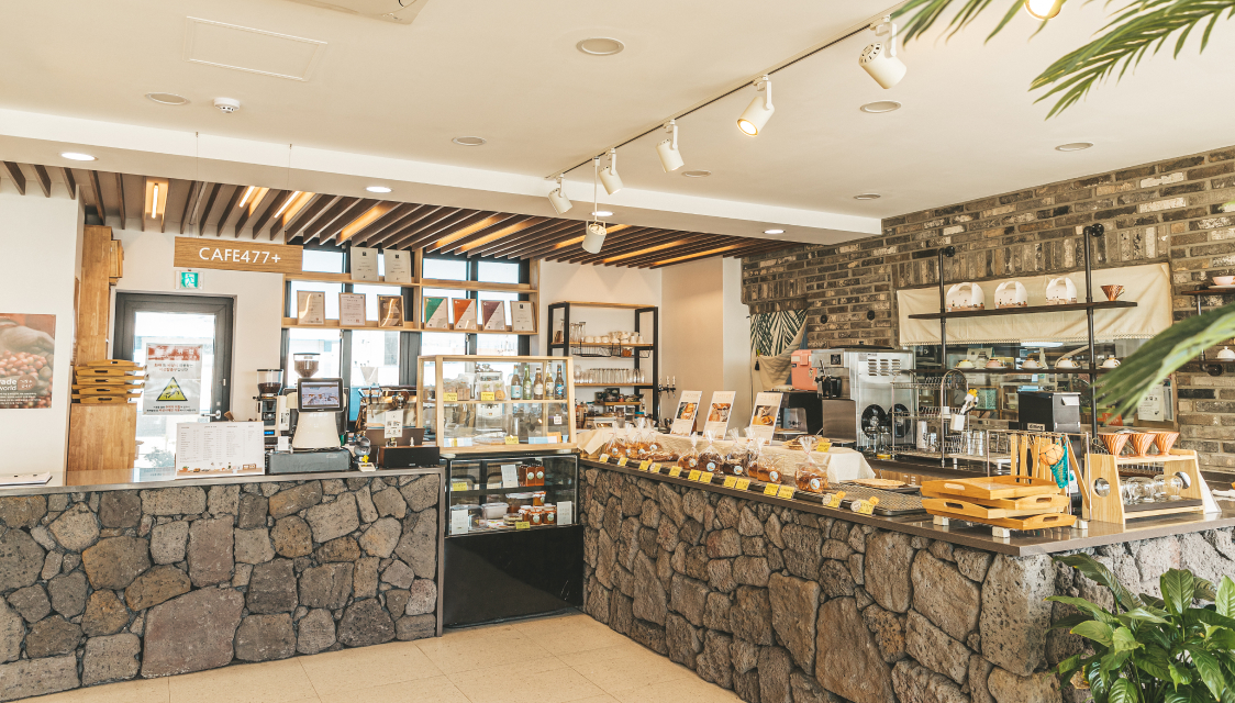 "477"은 2019년 유명한 관광지 하나 없던 세화리를 전국에 알리고 사람들의 발길이 머물며 다시 찾아오고 싶은 마을로 발전시켜보고자 대한민국 최대 규모의 협동조합을 설립하게 되면서 당시 뜻을 함께하게 된 최초의 출자 조합원 수를 의미하고, 앞으로 뜻을 함께 할 더 많은 조합원을 의미하는 “+”가 합쳐져 카페477+라는 이름이 탄생하게 되었어요