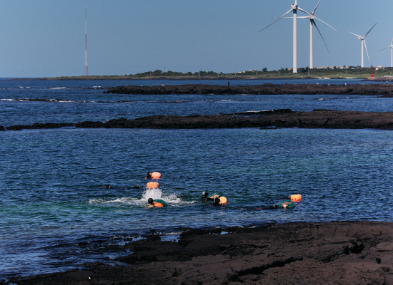 김녕수산문화복합센터에서는 바릇잡이 체험, 해녀체험, 낚시체험 등을 할 수 있어요. 물때에 따라 30분 ~ 1시간 정도의 시간변동 가능성이 있어요. 해녀체험은 해녀 삼춘들과 함께 에메랄드 빛 김녕바다로 들어가 직접 해산물을 채취하고, 바당 속에서 숨비소리를 배우며, 김녕리 해녀들이 대대로 지켜온 생활의 지혜를 온몸으로 체험할 수 있어요.