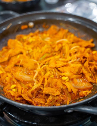 다양한 야채와 함께 자박하게 끓인 제주식 흑돼지두루치기